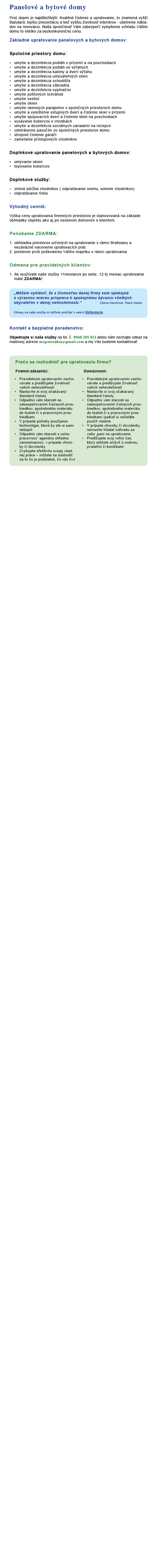 Naše služby poskytujeme v rámci celej Bratislavy 1. Staré mesto 2. Ružinov 3. Vrakuňa 4. Podunajské Biskupice 5. Nové mesto 6. Rača 7. Vajnory 8. Karlova Ves 9. Dúbravka 10. Lamač 11. Devín 12, Devínska Nová Ves 13. Záhorská Bystrica 14. Petržalka 15. Jarovce 16. Rusovce 17. Čunovo